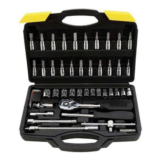 Praktikus 46 részes 1/4"-os Gola készlet, króm-vanádium (CrV) acélból készült elemekkel. A racsni 45 fogas mechanizmussal van felszerelve a precíz munkavégzés érdekében.