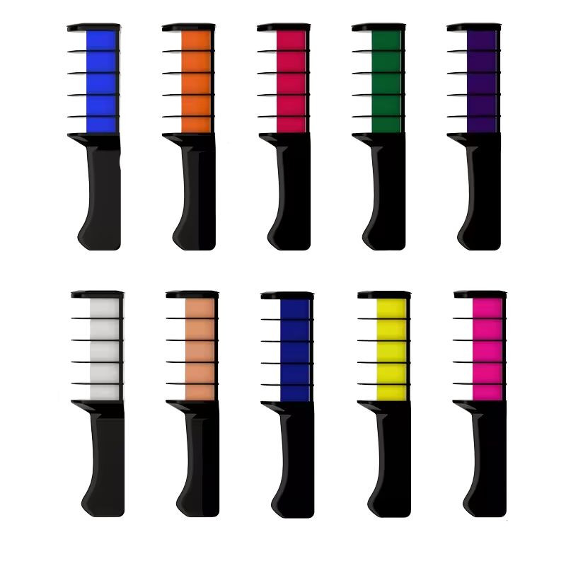 10 db Különböző színű Hajkréta Fésű (A készlet 10 színt tartalmaz, pl: Kék, Narancs, Piros, Zöld, Lila, Fehér, Világosbarna, Sötétkék/Lila, Sárga, Pink)