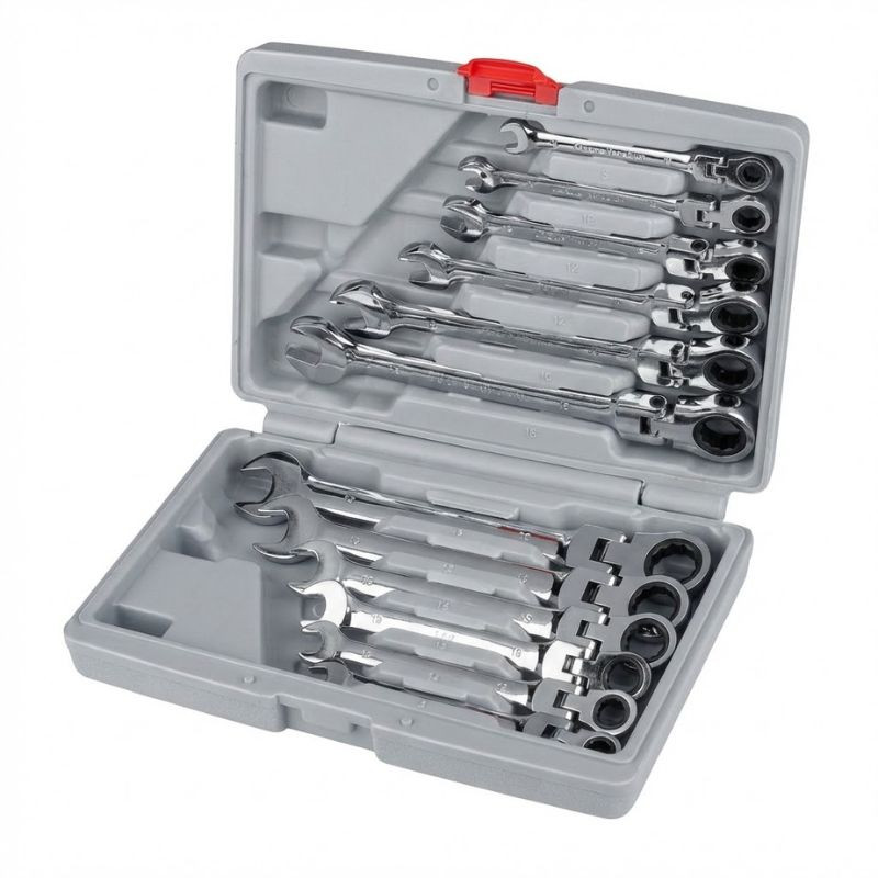 12 Részes Csuklós-Racsnis Csillag-Villáskulcs Készlet 16209