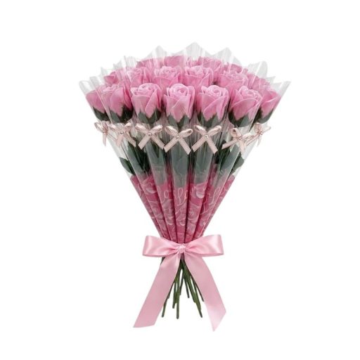 Ez a 20 darabos világos rózsaszín szappanrózsa szett a báj és a romantika megtestesítője. A csomagban található élethű virágok halvány rózsaszín árnyalata a gyengédséget szimbolizálja, így tökéletes választás friss kapcsolatok ünneplésére vagy Anyák napjára. Minden szál külön-külön, elegáns celofánba van csomagolva, amelyet masni és "Love" felirat díszít, így azonnal átadható ajándékként funkcionál.