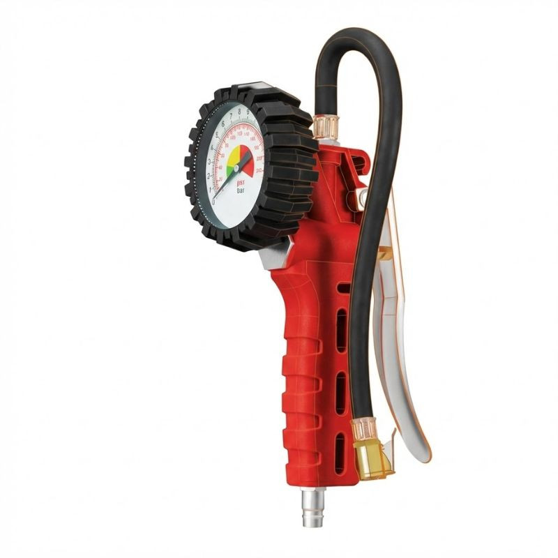 Ez a BLACK gyártmányú gumifújó pisztoly elengedhetetlen eszköz minden garázsban és műhelyben az abroncsok pontos keréknyomásának beállításához. A robusztus, piros színű készülékház és a védőburkolattal ellátott mérőóra tartósságot garantál még intenzív használat mellett is. Legyen szó személyautóról, teherautóról vagy motorkerékpárról, ez a szerszám megbízható segítséget nyújt a biztonságos közlekedéshez.