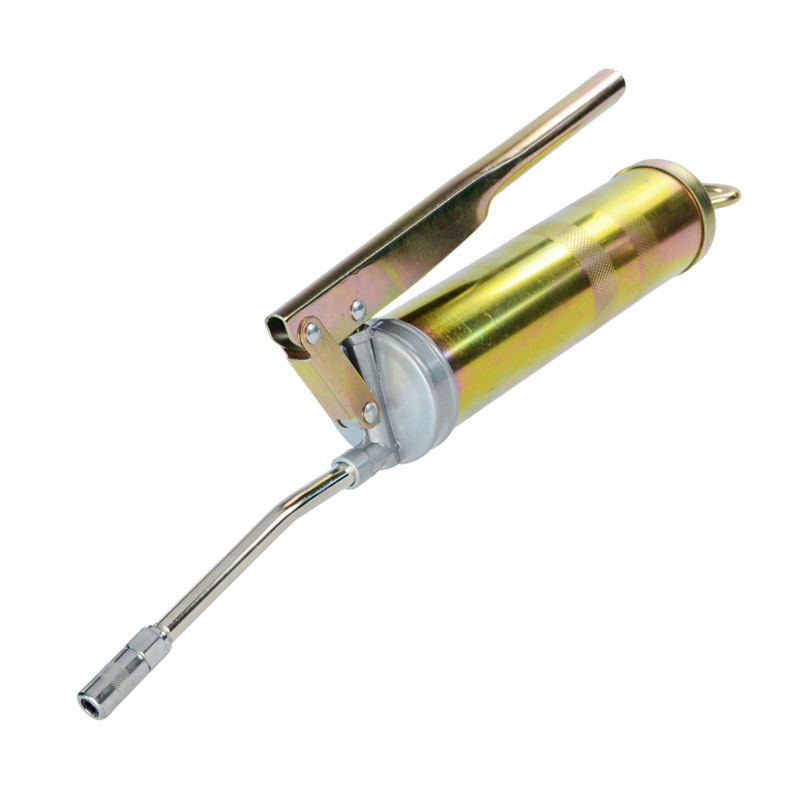A kézi működtetésű karos mechanizmus nem igényel hálózati áramot, így a szerszám bárhol használható. A pontos tömítés megakadályozza a szivárgást, az elhajlított fémcső és a hajlékony gumicső pedig lehetővé teszi a nehezen hozzáférhető helyek kenését is.