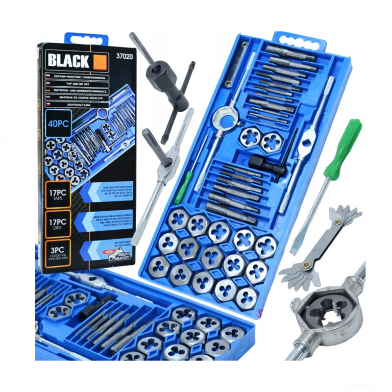 BLACK Menetmetsző és menetfúró készlet 40 db-os, kalibráló szerszámok dobozban 37020