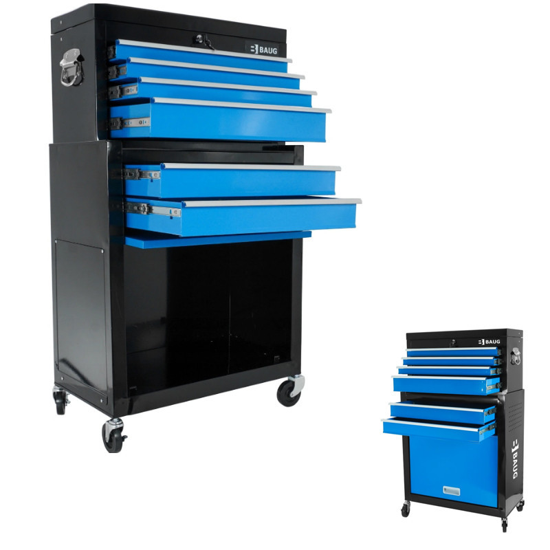 Baug Rendszerező szekrény 6 fiókkal, 4 kerékkel, üres szerszámtartó állvánnyal 110 cm x 60 cm B3903