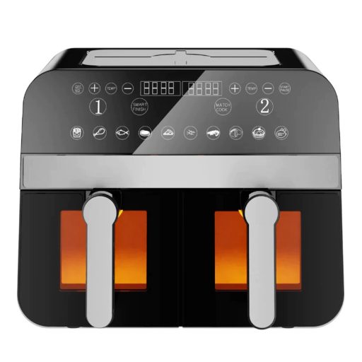 A 4,5 literes kosár mindegyike egymástól függetlenül működik, így két különböző ételt készíthet egyidejűleg, így tökéletes az egész étel gyors elkészítéséhez. A 10 előre beállított főzési funkció, köztük az olyan opciók, mint a sült krumpli, a csirke és a zöldségek, egyetlen gombnyomással biztosítják a kényelmet, elkerülve a találgatásokat a népszerű ételek elkészítésekor. Állítható hőmérséklet-tartománya (80-200°C) és 60 perces időzítője alkalmassá teszi a különféle főzési technikákhoz a sütéstől a sütésig, sokféle recepthez biztosítva a sokoldalúságot. Az egyes kosarakon lévő ablakok lehetővé teszik a főzési folyamat nyomon követését anélkül, hogy kinyitná a rekeszeket, segítve az egyenletes hőt és az optimális eredményeket.