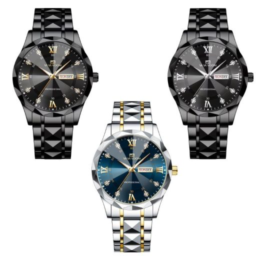 Elegáns Férfi Kvarc Karóra - 3D Csiszolt Üveggel 1db