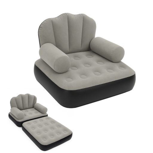 Ez a kényelmes és sokoldalú felfújható kanapé ideális megoldás otthonra, vendégszobába vagy akár kempingezéshez. Kialakítása lehetővé teszi, hogy ülőhelyként vagy fekvőágyként is használható legyen. A puha felső felület és a stabil szerkezet kényelmes pihenést biztosít bármilyen helyzetben.