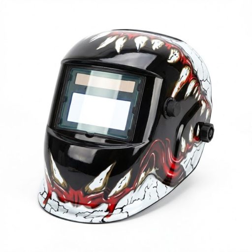 Ez a Flinke gyártmányú automata hegesztő fejpajzs a biztonság és az egyedi stílus ötvözete a különféle hegesztési munkálatokhoz. A pajzs látványos, fogakat ábrázoló grafikája mellett a dobozon egyéb minták, például koponyás és amerikai zászlós kivitelek is láthatók.