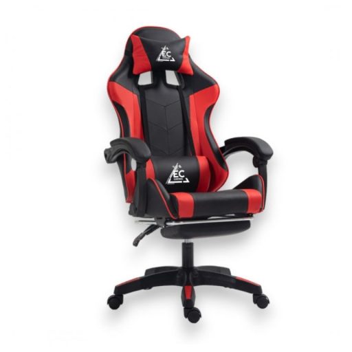 EC GAMING forgószék lábtartóval és masszázspárnával – piros KO24CZE