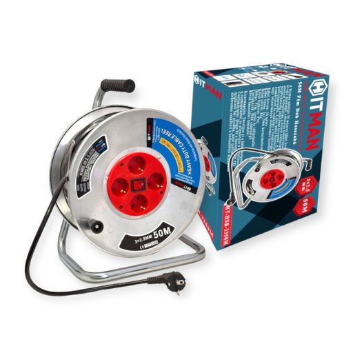 A kábel egy fém dobra van feltekercselve, amely könnyű tárolást és szállítást tesz lehetővé. Az IP44 védettségű csatlakozók biztosítják, hogy a kábel ellenáll a por és a fröccsenő víz ellen, így kültéri és beltéri használatra egyaránt alkalmas.