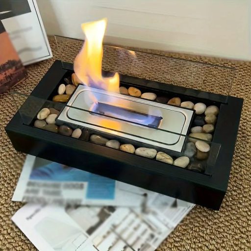 Ez a hordozható kandalló egy elegáns és praktikus darab, matt fekete fémből és üvegből, modern és letisztult dizájnnal, könnyen összeszerelhető. Figyelemre méltó az a tény, hogy ez a kandalló nem bocsát ki füstöt, így tiszta és hatékony megoldást kínál a nappali vagy a kert meleg hangulatának megteremtésére anélkül, hogy a levegő minőségét veszélyeztetné. Minőségi anyagokból készült asztali kandalló, melyhez tartozék tartozik a kényelmes és biztonságos lánggyújtáshoz és eloltáshoz. Maximális égőkapacitás: 150 ml.