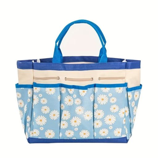 Varázsoljon vidám és üde hangulatot a kertbe ezzel a gyönyörű égszínkék szerszámtartó táskával! A világoskék alapszín és a krémszínű felső szegély tiszta, esztétikus megjelenést biztosít, amelyet a fehér krizantémok tesznek teljessé. Ez a táska nemcsak a kertben mutat jól, hanem a házon belüli rendszerezésben is nagy segítséget nyújt: kiválóan alkalmas tisztítószerek, varrókészletek vagy barkácseszközök hordozására is. Könnyű szerkezete ellenére rendkívül teherbíró, így a nehezebb kézi szerszámokkal is könnyedén megbirkózik.