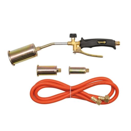 Perzselő (tetőfűtő) propán-bután gázégő készlet, kiegészítő fúvókákkal különböző munkafeladatokhoz.