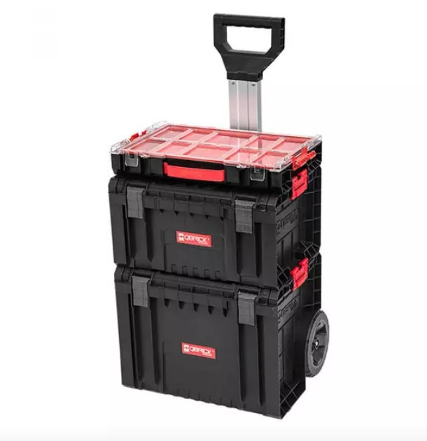 A CART 2 szervező QBRICK PRO szerszámosláda több szerszámtároló elemet egyesít, így rendszerezett teret kínál a felhasználónak a szerszámok tárolására és szállítására. A készlet egy kis PRO ORGANIZER 100 rendszerezőből, egy közepes méretű PRO TOOLBOX-ból és egy mobil PRO CART kerekes dobozból áll.