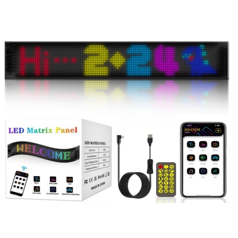 Ez a prémium kategóriás nagyméretű RGB LED mátrix kijelző látványos, színes megjelenítést tesz lehetővé különféle alkalmazásokhoz: autó hátsó ablakába, üzletek kirakatába, rendezvényekhez vagy otthoni dekorációhoz. A beépített Bluetooth funkciónak köszönhetően a panel könnyedén vezérelhető mobilalkalmazással vagy távirányítóval is.