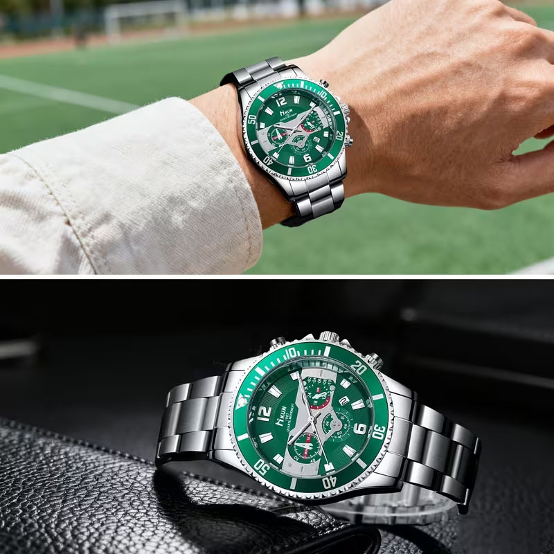 Stílusos és luxus férfi quartz óra zöld hátlap EM7485257