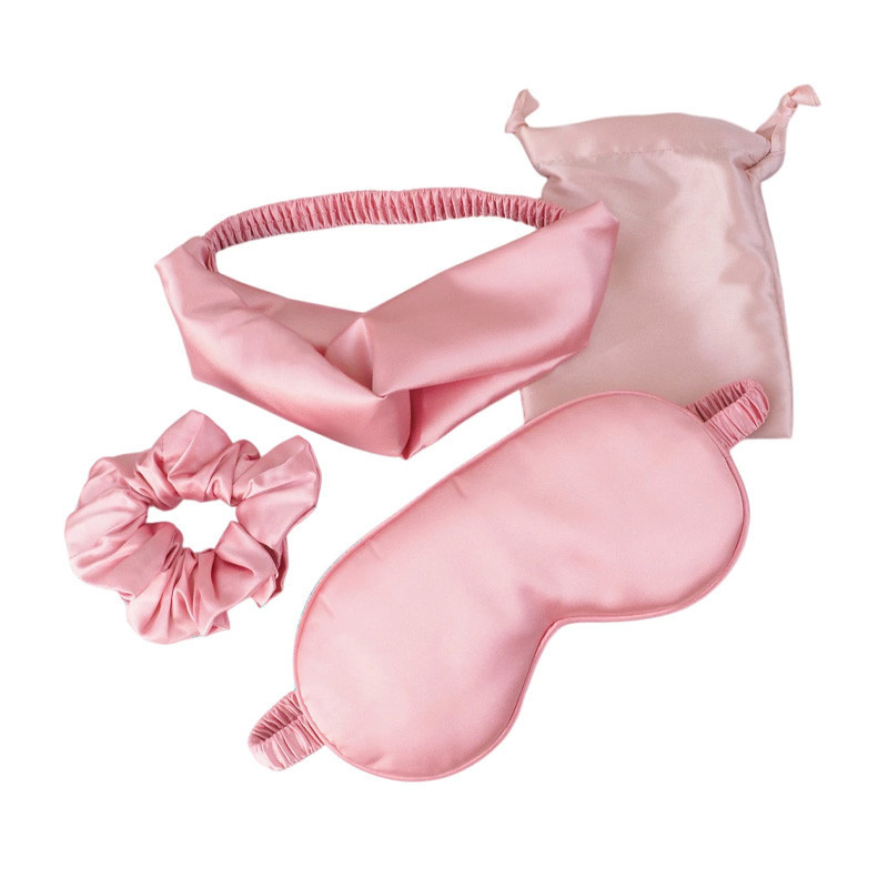 Ez a szatén kozmetikai fejpánt készlet ideális kiegészítője a bőrápolási és sminkrutinodnak illetve az alvásodnak is. Puha és rugalmas anyagának köszönhetően kényelmes viseletet biztosít, miközben hatékonyan tartja távol a hajadat az arcodtól a tisztítás, sminkelés vagy arcmaszkok felvitele során, a szemmaszkban pedig bármilyen fényben tudsz aludni.