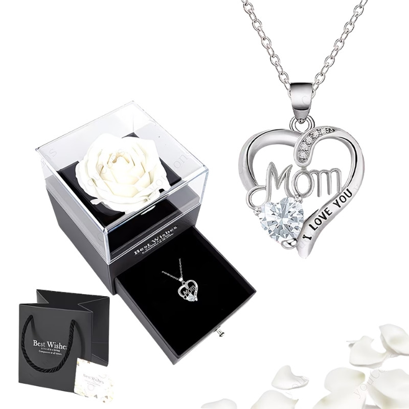 Szív alakú medálos nyaklánc fehér rózsás ajándékdobozban GK5467641