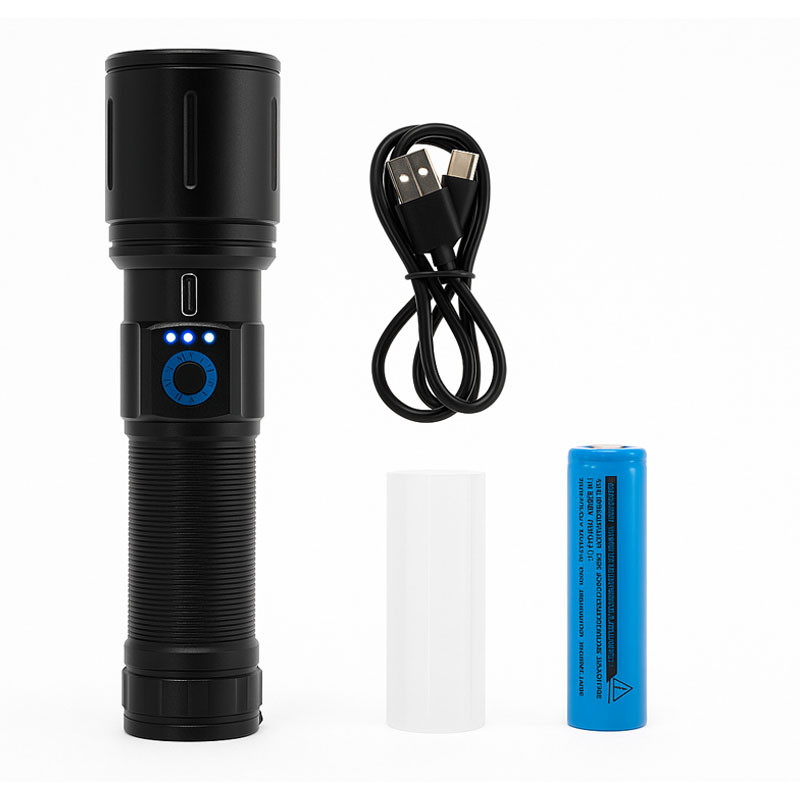 Energiaellátás: 18650 típusú újratölthető akkumulátor (tartozék)