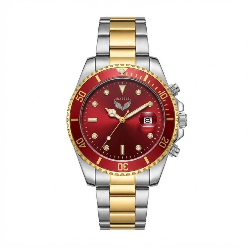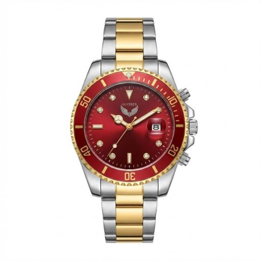 ULYSSES Elegáns Férfi Karóra – Vörös Számlappal és Kéttónusú Fém Szíjjal ULY1R