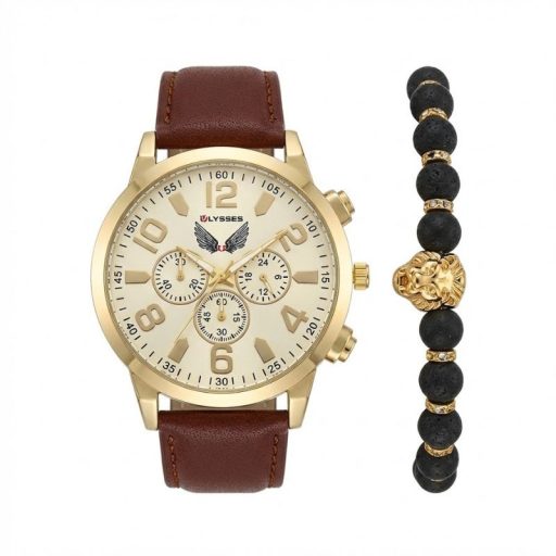 ULYSSES "Golden Jaguar" Férfi Karóra és Karkötő Ajándékszett – Arany/Bordó ULY3AB