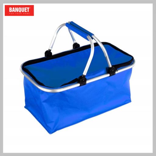 Az összehajtható kempingkosár (kék) cipzárral zárható piknikezésre, grillezésre, de akár faházba, házikóba is használható. A kosár mosható anyagból készült, és két puha markolatú fogantyú biztosítja a praktikus hordozást. Összecsukható a jobb tárolás érdekében.