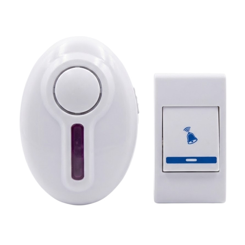 Vezeték nélküli, elemes működésű ajtócsengő szett színes fényjelzéssel és 32 választható dallammal. Gyorsan telepíthető, kábelezés nélkül ideális lakásokba, családi házakba, irodákba vagy üzletekbe.