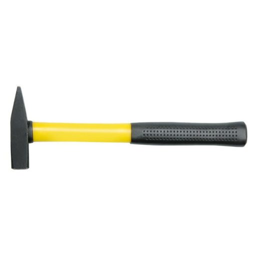 Erős acélból készült kalapács, üvegszálas alapú, ütésálló műanyag nyéllel. A nyél csúszásmentes, profilozott gumírozott bevonattal van ellátva a kényelmes és biztonságos fogás érdekében. A kalapács feje fekete felületkezelést kapott a tartósság növelésére.
