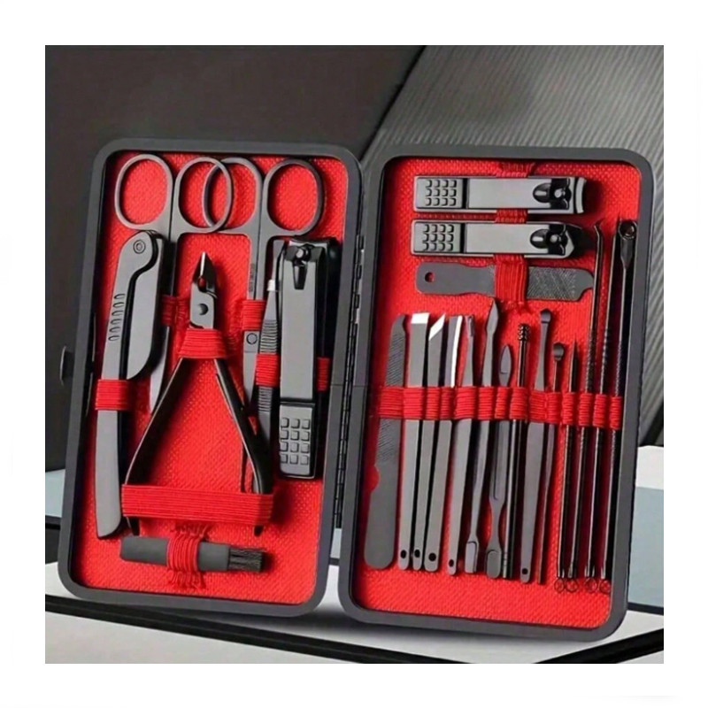 Prémium 24 részes manikűr és pedikűr szett – elegáns tokban piros-fekete - 40683700