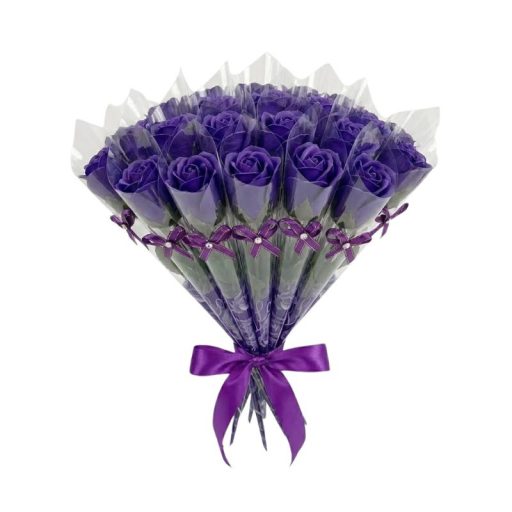 20 db Szálanként Csomagolt Illatos Szappanrózsa Díszdobozban - Lila JA3008169-L